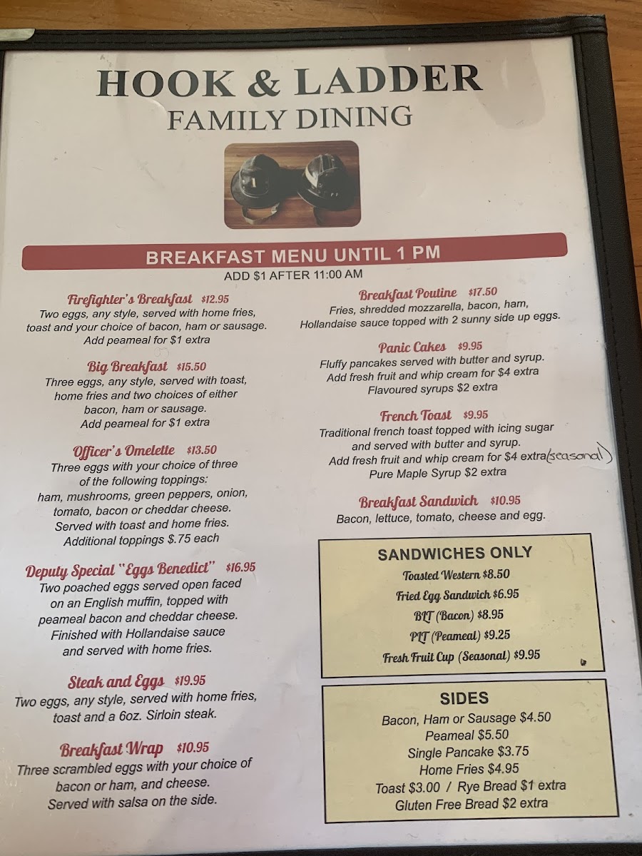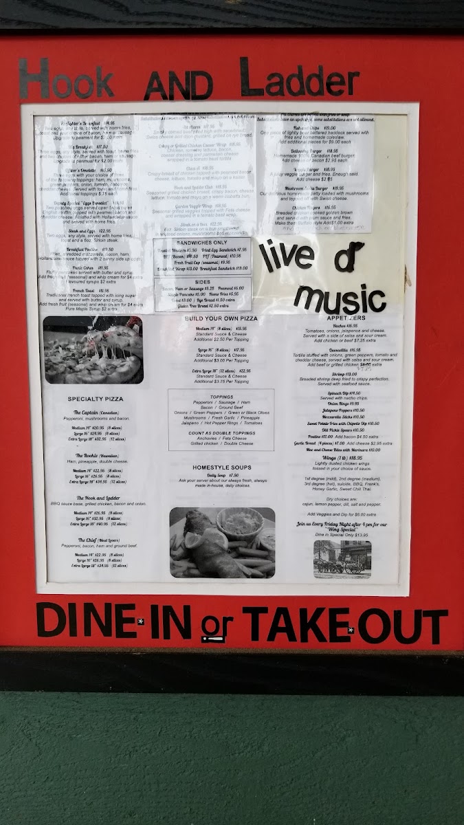 The Hook & Ladder Bar and Grill Menu